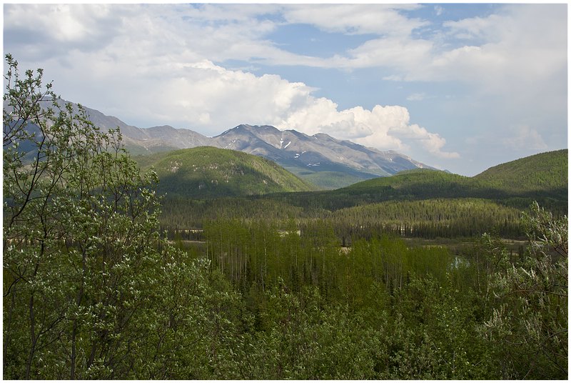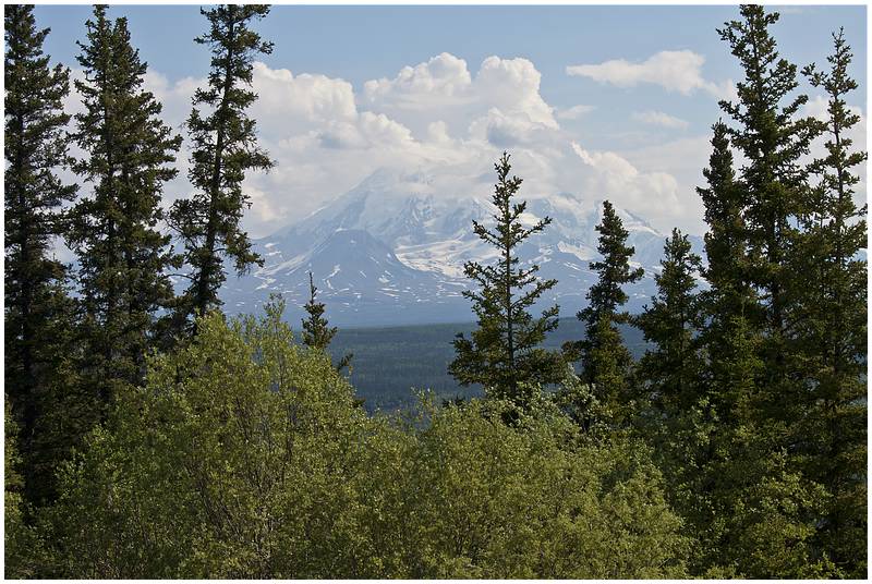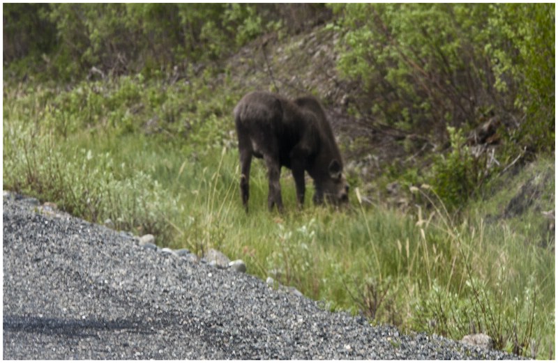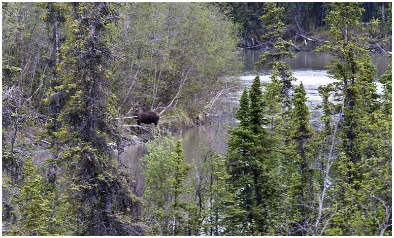 Von Tok aus geht es nun über den Tok Cutoff in Richtung Südwesten. Wieder eine andere Landschaft und sie ist traumhaft, die Berge im Hintergrund sind teilweise über 4000 m. Auf dieser Strecke sehe ich mehrere Elche, aber sie sind schneller von der Strasse verschwunden als die Bären und somit ist ein fotografieren kaum möglich. Ein vermeintlicher Wolf entpuppt sich aus der Nähe als süßes Hündchen.