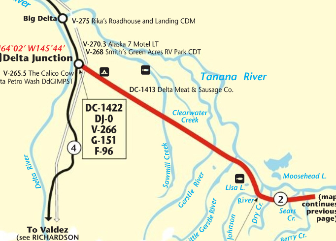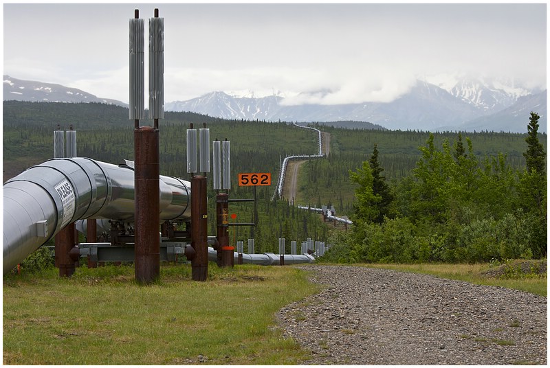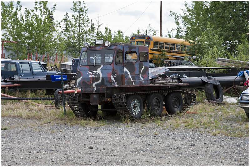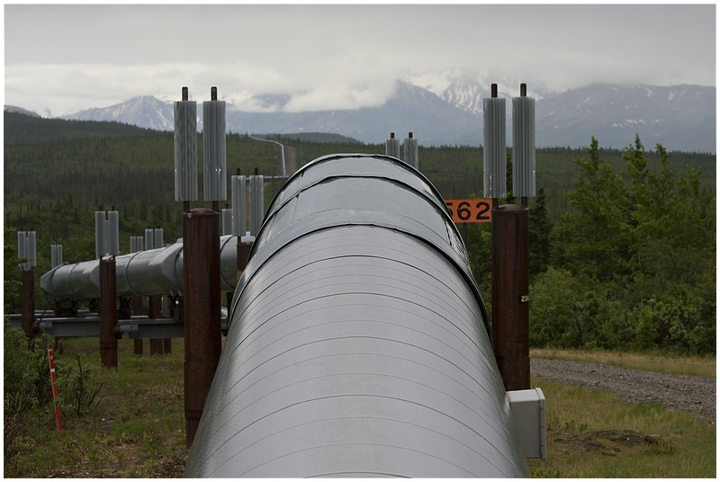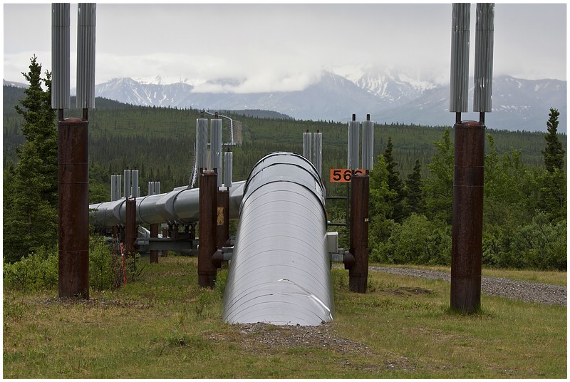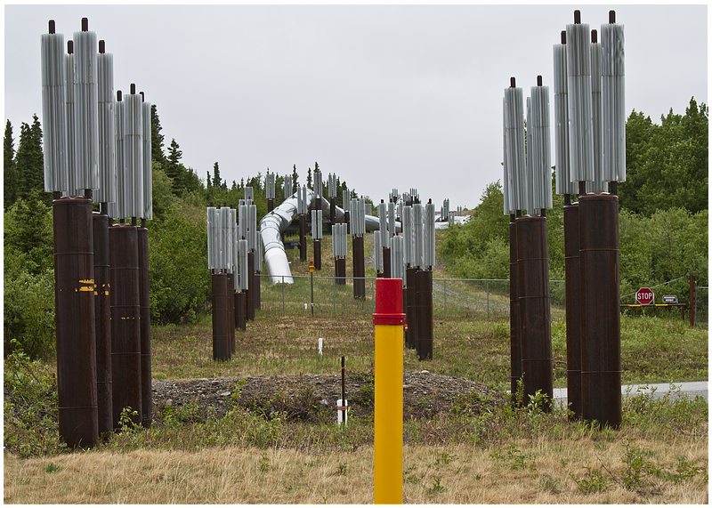 05.06.2010In der Nacht hat es immer wieder geregnet und der Himmel ist immer noch verhangen. Mein erster Stopp in Richtung Norden ist an der Alaska Pipeline, die hier den Hwy kreuzt. Danach geht es an Fort Greely vorbei, eine große militärische Basis in Alaska. Fort Greely ist Stützpunkt für für Antiballistische Raketen.