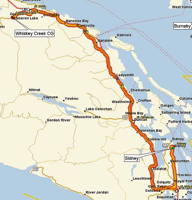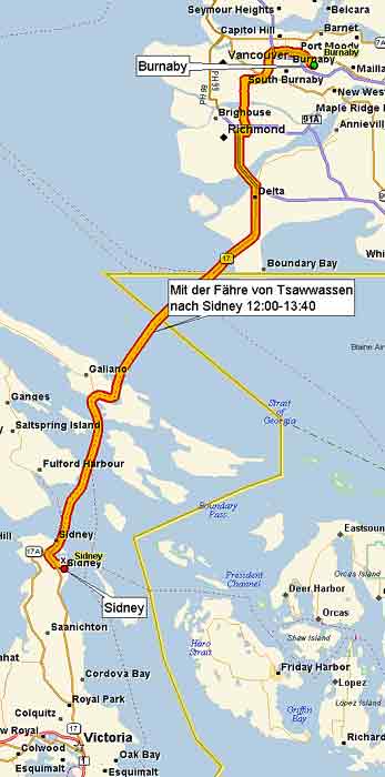 Weg zur Fähre. Ich wollte zur Fähre nach Tsawwassen und Barbara hatten einen