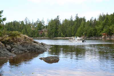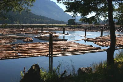 Sayward schauen wir uns das Flößen bei einer Holzverladung an und fahren