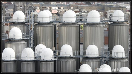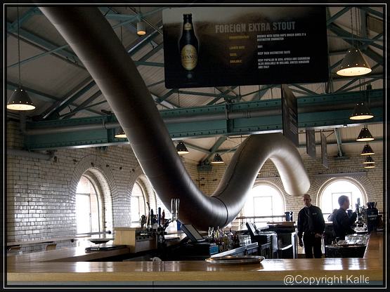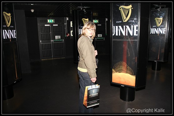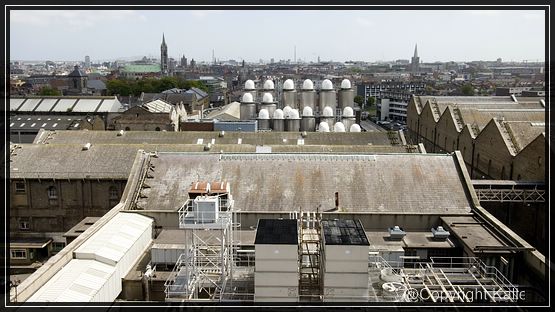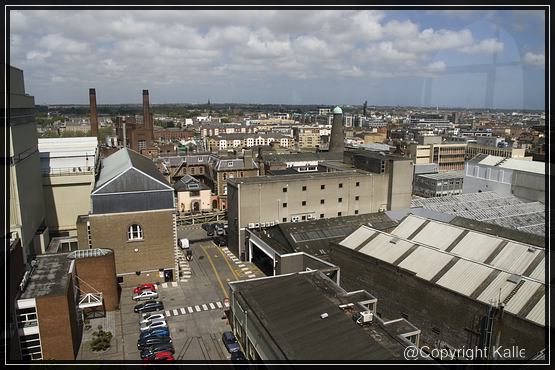 12. Mai Heute wollen wir die Guinness Brauerei besichtigen. Dazu fahren wir mit dem Bus zum Centrum, steigen um und weiter geht es zu den Liberties. Von hier aus sind es nur wenige Meter bis zur Brauerei. Der Eintritt kostet 15,--€, darin ist ein Pint Guinnes enthalten, das man entweder selber unter Anleitung zapfen kann oder man trinkt sich sein Bier oben in der GRAVITY® Bar, auf ca 40m Höhe mit einem 360° Blick über Dublin. Die Besichtigung findet im Storehouse statt.