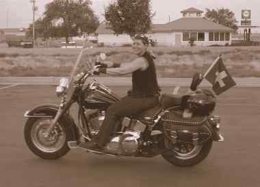 auf die Harley, die Frau kann nicht nur toll lächeln die fährt auch Harley.