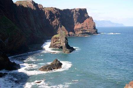 Montag, 12.03. Noch einmal wollen wir die Wanderung zur Ostseite der Insel unternehmen, im trockenen. Diesmal gelingt es und wir machen eine wunderbare Tour in Sao de Lourenzo. In Canico, vor dem Hotel trinken wir Kaffee und essen Eis. Am Abend testen wir ein anderes Lokal in Canico, das Restaurante Central Churrascaria, rechts neben der Kirche. Wir essen gegrilltes Huhn und sehen, wie an den Nebentischen große Fleischspieße serviert werden. Dann kommt auch ein Kellner zu uns und schneidet von einem Spieß etwas ab, was wie Speck aussieht. Es ist aber gegrillte Ananas mit Zimt, sehr lecker.