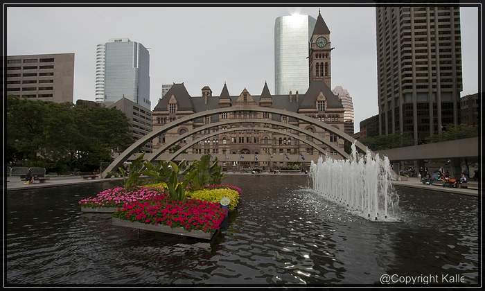 Tiff ist überall in der Stadt, so auch am Rathaus. Am Abend gelangen wir noch einmal zum Dundas Square, hier hören wir uns Livemusik an, bevor es zum Hotel geht. Diesmal kennen wir den Weg und sind in wenigen Minuten am Ziel.