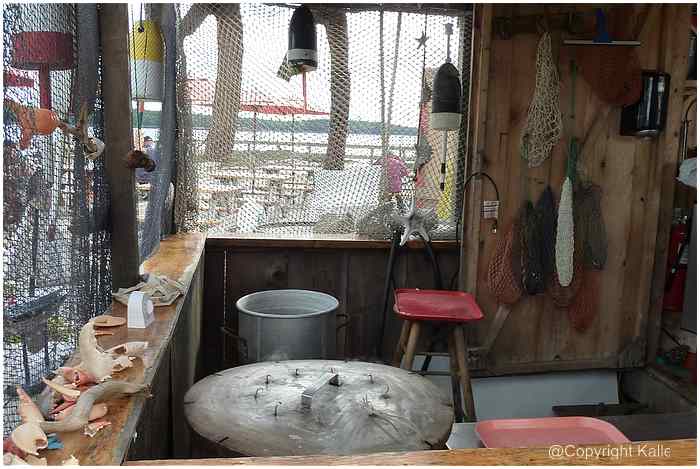Beim Überqueren der Montsweag Bay halten wir in Wiscasset und können an einem Lobster Imbiss nicht vorüber gehen.