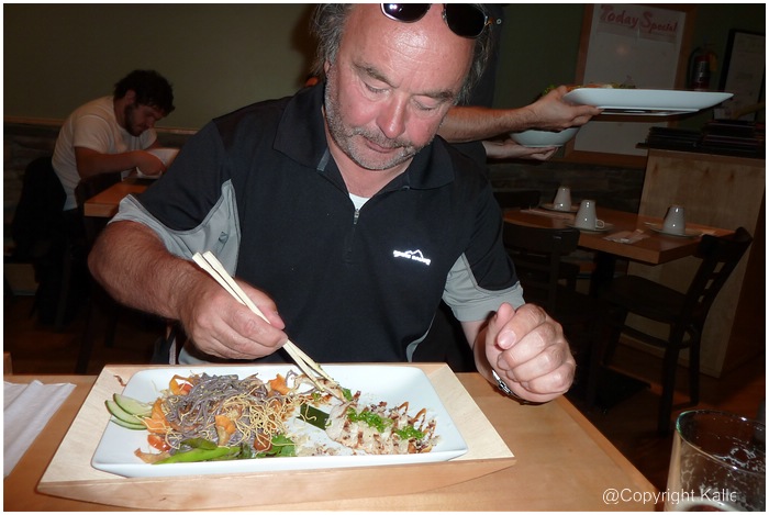 Die Church St ist eine Fußgängerzone mit Geschäften, Cafe`s und Restaurant. Viele junge Leute verbringen den milden Abend auf der Straße und es gibt Livemusik. Zum Abendessen gehen wir in ein japanisches Nudelhaus und anschließend gibt es FROZEN DRINKS bei Ben & Jerrys.