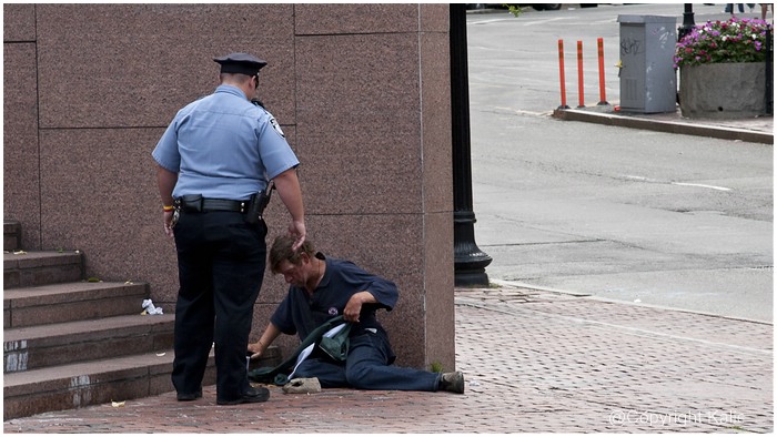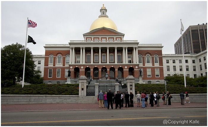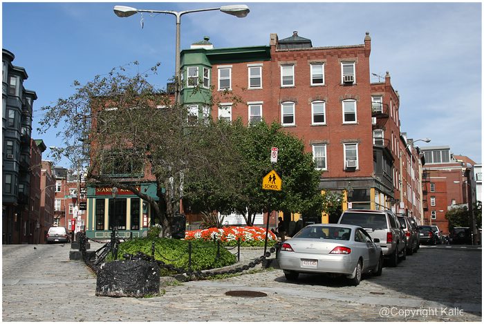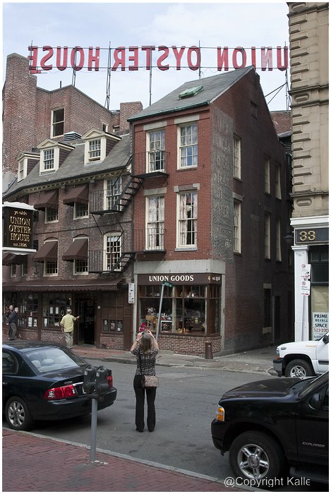 Mittwoch 23. September 2009Ungewöhnlich ist es, dass man nur bis 09:00 im Hotel frühstücken kann und so fällt das frühstück kürzer aus. Wieder geht es mit der Subway nach Downtown. Heute werden wir den Freedom Trail gehen, eine etwa 4 km lange Besichtigungs-Route in Boston, die sechzehn, historische Sehenswürdigkeiten verbindet. Der Weg ist mit einer durchgezogenen roten Linie auf dem Boden markiert und führt vom Boston Common im Stadtzentrum durch die Innenstadt, über den Charles River im Norden nach Charlestown und endet dort am Bunker Hill Monument. Das Wetter ist ideal, sonnig, warm und wir machen uns auf die Route. Die erste größere Pause legen wir am Faneuil Hall Marketplace ein und hier trinken wir leckere Fruchtcocktails. Am Ende unserer Tour kommen wir hierher noch einmal zurück und essen Schwertfisch und Scallops.