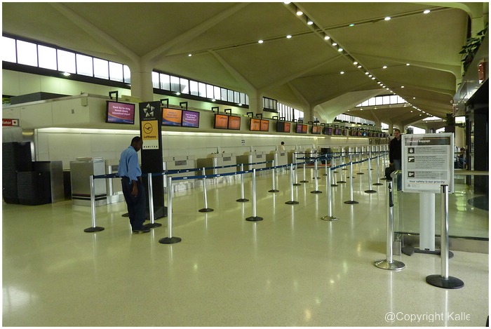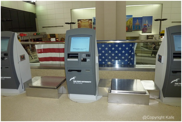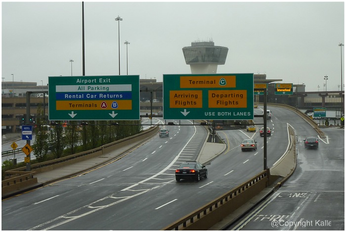 Sonntag, 27. September 2009Letzter Tag der Reise. Schon in der Nacht hat der Regen begonnen und es schüttet immer noch, so fällt der Abschied leicht. Das Auto wird zum Letzten Mal beladen und es geht in Richtung NY. In Höhe von NY Bronx geraten wir in einen Stau, der ca. 1 h dauert und das am Sonntag. Grund sind Straßenbauarbeiten. Unterwegs kommen wir an eine Mautstelle, hier heißt es Ticket oder No Ticket. Wir nehmen No Ticket, denn wir haben keins. Unsere Station ist nicht besetzt und so fahren wir weiter, ist ja Sonntag. An der nächsten Mautstelle sehe ich wie die Autos vor mir $2,35 zahlen. Ich gebe der Dame das abgezählte Geld und sie will ein Ticket. Jetzt verstehe ich die Beschilderung von vorhin. Wir haben keins und wissen auch nicht wo wir aufgefahren sind und müssen so den Höchstbetrag von $6,95 zahlen. Zweite Panne. Kurz vor dem Flughafen EWR fahre ich von der Interstate ab um noch einmal etwas zu Essen. Allerdings ist hier nichts zu finden und wir müssen wieder den Weg nach EWR suchen. Endlich stehen wir bei National und in 0,Nichts ist das Auto abgegeben. Bevor die LH-Schalter öffnen checken wir an einem der Automaten ein und wiegen unser Gepäck. Danach geben wir das Gepäck auf, gehen Essen und nun ist warten angesagt.