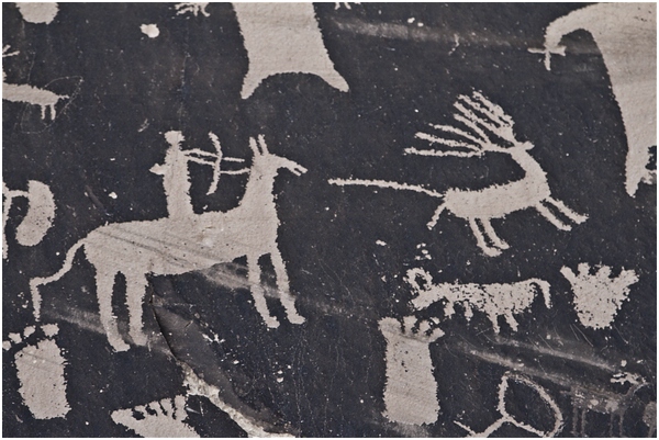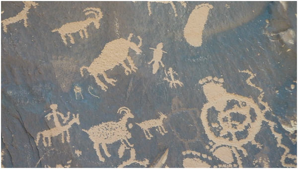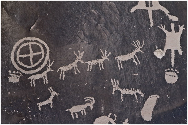 Newspaper Rock, hier legen wir einen ersten Stopp ein.