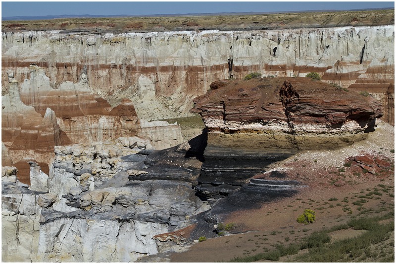 Zum Nachmittag statten wir dem Coal Mine Canyon noch einen Besuch ab. Der Canyon befindet sich etwa 16 Meilen südöstlich von Tuba City, er ähnelt etwa dem Brice Canyon. Man kann nur am oberen Rand entlang laufen, ein Abstieg ist nicht oder sehr schwierig. Als der Wind am Canyon immer stärker wird, fahren wir zurück nach Tuba City. Den Versuch vom Hotel aus zu fuß zum Essen zu gehen geben wir schnell auf. Zum Glück ist eine Pizzeria in der Nähe des Hotels und so wird es heute nur eine Pizza im Hotel.