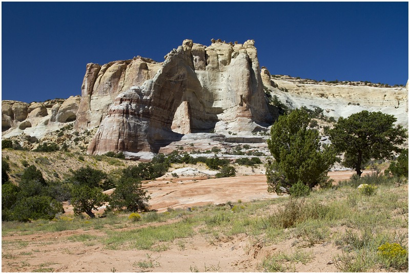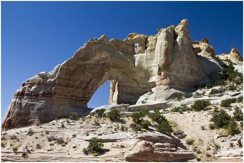Donnerstag, 9. September 2010 Auch den Sonnenaufgang schauen wir uns vom Balkon aus an, wann hat man schon einmal so eine Gelegenheit. Nach dem Frühstück geht es weiter in Richtung Tuba City. Vor Tuba City verlassen wir die 160 und biegen in die Route 21 ein. Jetzt sind es noch ein paar Meilen auf Asphalt, anschließend Schotter und zum Schluss tiefer Sand. Das Ziel ist erreicht, wir stehen am Ziel „White Mesa Arch“.