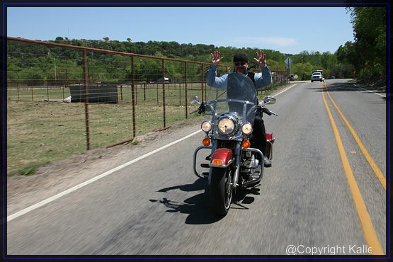 Nun ist es nicht mehr weit und wir sind in Fredericksburg. Man spricht deutsch, könnte man sagen. Überall sieht man deutsche Namen, an Hotels, Restaurants und auch auf dem Friedhof. Nachdem wir unser Hotel bezogen haben, starten einige noch nach Luckenbach. Es sind nur knappe 20km bis zur selbstständigen Gemeinde Luckenbach mit drei Einwohnern. Eigentlich gibt es nur das Postamt/Kneipe und den Saloon. Allerdings ist dieser Saloon in der Outlaw-Bewegung der Country-Musik ein Markenzeichen. Wir bleiben einige Zeit im Ort, trinken in der herrlichen Nachmittagssonne Bier, gemeinsam mit einheimischen Bikern. Leider beginnt das heutige Konzert sehr spät und wir müssen wieder zurück nach Fredericksburg. In Fredericksburg fahre ich noch durch die Strassen, bevor ich mich am Abend mit einigen Leuten zum Abendessen treffe. Der Abend endet dann im Friedhelms Bavarian Inn.