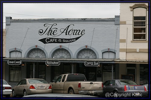wird Austin sein, die Hauptstadt von Texas. Ich gehe mit einigen ins Acme, Cafe on the Square, ein netter Laden mit einer skurrilen Toilette. Danach bummle ich durch den kleinen Ort und gehe wieder zu den Bikes. George ist immer noch da und er gibt mir seine Karte, damit ich später seinen Bericht in der Zeitung lesen kann. Hier ist er als Online-Version: