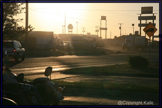 Mit einem herzhaften Cowboy Frühstück verabschieden wir uns von der Mayan Dude Ranch und satteln unsere Pferde für die längste Tagesetappe der Reise. Während wir in der ersten Etappe das Hill Country hinter uns lassen, liegt vor uns die Weite von West Texas, oder besser gesagt Big Bend County. Auf den heutigen 300 Fahrmeilen (480 km!) wird uns bewusst, was echte Weite bedeutet. Hier kommen ungefähr 1000 Longhorn Rinder auf einen Einwohner und die Ranches sind so weit voneinander entfernt, dass das Flugzeug vor dem Farmhaus schon zum Standard geworden ist. Die Ost- West Verbindung Interstate 10 vermittelt uns ein anschauliches Bild vom amerikanischen Fernverkehr und weist uns mit ihren lebensnotwendigen Truckstops den Weg nach Westen.