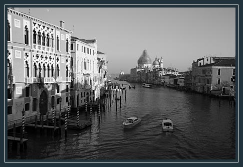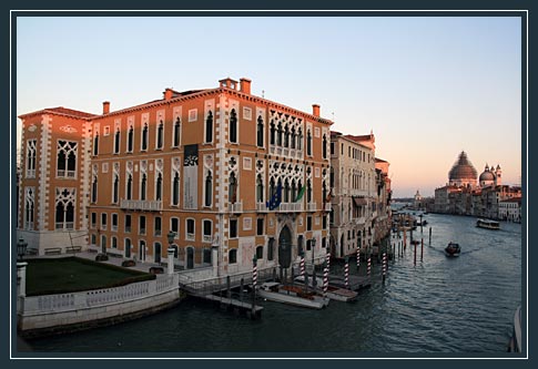Der Canal Grande (häufig auch fälschlich Canale Grande genannt), im Venezianischen Canalazzo, ist die knapp 4 km lange, zwischen 30 und 70 m breite und bis zu 5 m tiefe Hauptwasserstraße in der Lagunenstadt Venedig. Die erste Biegung des s-förmigen Kanals wird als volta di Canal bezeichnet. Er ist das letzte Stück des nördlichen Armes der Brenta, der durch die Lagune zieht, weshalb das Wasser hier im Gegensatz zu den übrigen Kanälen immer fließt. Rund 45 kleinere Kanäle münden in den Canal Grande ein. |