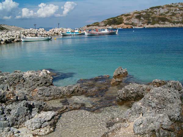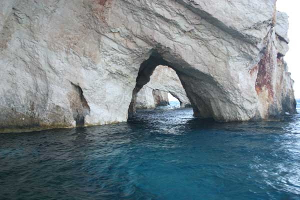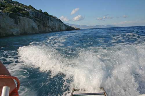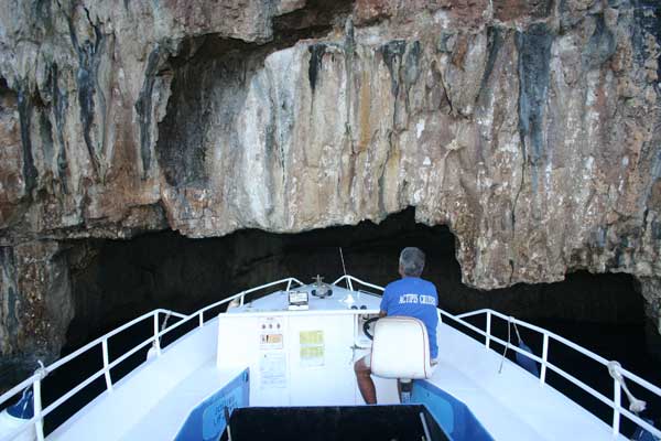 Agios Nikolaos von hier starten die Boote zur Blue Cave. Am südlichen Rand des Hafens gibt es auch eine kleine Badebucht, die wir sofort zum Schwimmen genutzt haben. Mit einem der letzten Boote fuhren wir zu den Blue Cave hinaus. Vorteil war, wir hatten das Glasbodenboot für uns allein. Nachteil, die tief stehende Sonne konnte nicht mehr die richtigen Lichter zaubern. |